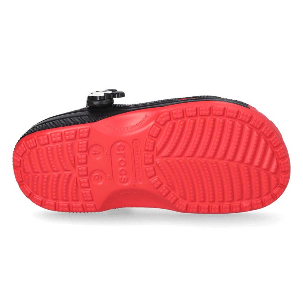 Deze clogs zijn perfect voor wie helemaal weg is van Mickey Mouse en/of Disney. Het paar is uitgevoerd met het hoofd van Mickey Mouse. Verder zijn ze net zo comfortabel en veelzijdig als hun standaard tegenhanger. Met Crocs clogs geniet je van het zachte en ergonomische draagcomfort en de vele praktische eigenschappen dankzij het Croslite™ materiaal. Het is waterbestendig, licht van gewicht, schokabsorberend, geurbestendig en slijtvast. De belasting op de voeten, onderbenen, knieën, heupen en onderrug worden verminderd en het resulteert in minder vermoeidheid van de spieren. Bovendien zijn de clogs makkelijk schoon te maken en drogen ze snel. De hielband zorgt ervoor dat ze goed aan de voet blijven zitten tijdens het lopen. Kortom; deze leuke Mickey Mouse clogs van Crocs zijn perfect voor werk, recreatie en vrije tijd - en een echte blikvanger voor Disneyfans!