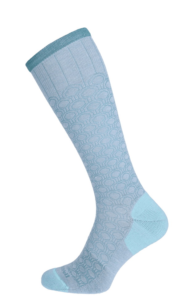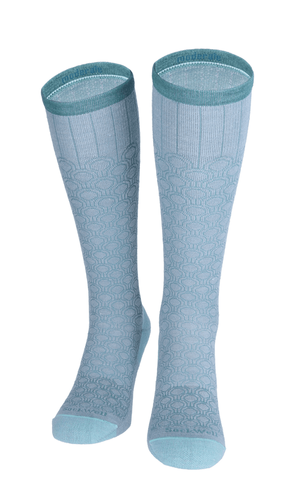 De Sockwell Deco Dot is een modieuze compressiekous met fraai geometrisch patroon. De kous is voorzien van lichte klasse 1 compressie. Het helpt de bloedcirculatie in de benen optimaal te houden en vochtophoping te voorkomen. Het minimaliseert het gevoel van vermoeide of zware benen en helpt spataderen tegen gaan. De natuurlijke garenmix met merinowol en bamboe houdt de voeten droog, fris en aangenaam op temperatuur. De sokken zitten heerlijk comfortabel, de hele dag door.