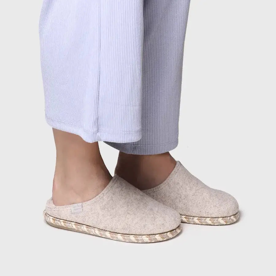 Deze Deli-FP van Toni Pons zijn damessloffen met een gemakkelijke instap. Het bovenmateriaal is vervaardigd van vilt in een effen kleur. Ze zien er stijlvol uit en bieden comfort en warmte voor de voeten. Het uitneembare voetbed is bekleed met knuffelzachte en heerlijk warm aanvoelende imitatiebont om het draagcomfort compleet te maken. De flexibele rubberzool maakt ze geschikt om ook even mee naar buiten te lopen. Rondom zijn ze afgewerkt met gevlochten, meerkleurig jute. Dit maakt de pantoffels onmiskenbaar Toni Pons.