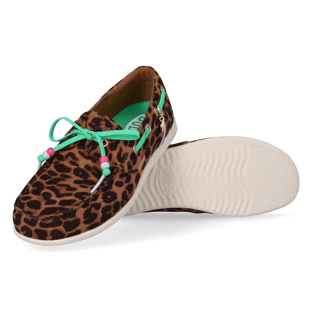 Deze eigentijdse damesloafers combineren een klassiek silhouet van bootschoenen met moderne speelsheid, helemaal HEYDUDE. Het bovenwerk is uitgevoerd met trendy luipaardprint en kleurrijke details. Het maakt deze Harbor Lo Breeze Premium de perfecte zomerschoenen voor vrijetijdsgelegenheden. Stijlvol te combineren en met een flinke dosis comfort.