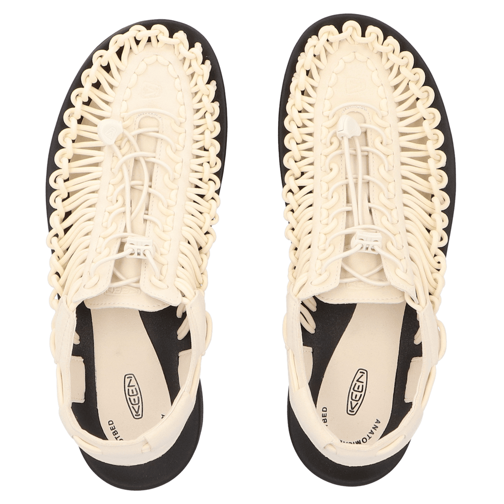 De KEEN Uneek heeft een uniek ontwerp met veel voordelen. Een onconventionele vormgeving die opvalt en garant staat voor een bijzonder hoog draagcomfort. Het biedt een perfecte mix tussen de ondersteuning en bescherming van een dichte schoen en de luchtigheid van een sandaal. Het luchtige vlechtwerk met vrij bewegende koordverbindingen laat zich in combinatie met de elastische koordsluiting perfect aan de vorm van de voet aanpassen, zonder dat het gaat knellen. De koorden zijn vervaardigd van gerecycled PET-plastic. De hielband is van microvezel met een ademende mesh-voering. De lichtgewicht PU-tussenzool en antislip rubber loopzool met razor lamellen zorgen voor prettige demping en uitstekende grip. Het anatomisch gevormde voetbed is afgewerkt met een microvezel deklaag.